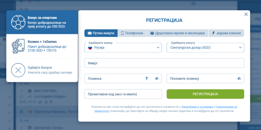 Postoji impresivna 1xBet lista načina na koji se možete registrovati na sajtu kladionice.